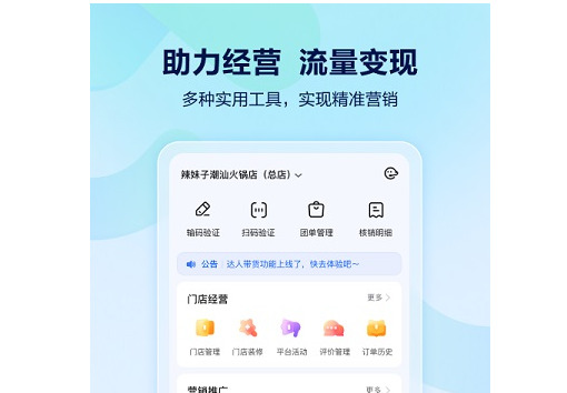 抖音来客是为一款专为抖音商家推出的营销软件。软件操作界面简单,支持商家对店铺进行店铺装修、开通团购、促销活动管理、订单通知管理,还可以在这里全面展示你店铺的各种数据,为很多用户提供便捷的操作。抖音来客拥有专业的商业服务,多维数据整合分析,各种实用的工具帮助店主管理店铺,可以智能地为用户推荐解决方案。有需要的用户,快来下载体验吧!