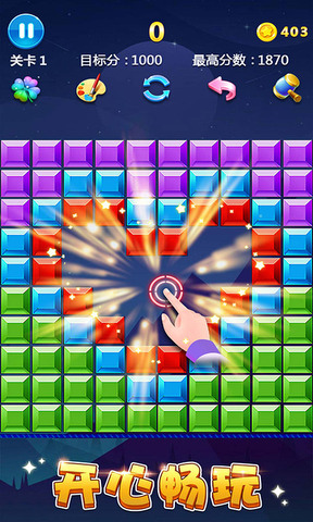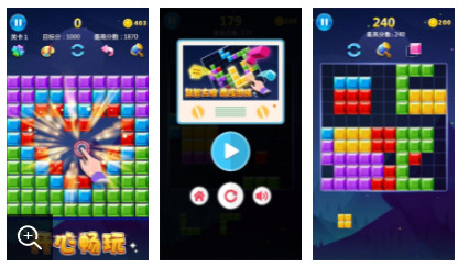 3.消除模式:通关游戏,消除1010方块宫格中三个或三个以上颜色相同的方块,达到目标分数即可到达下一关。