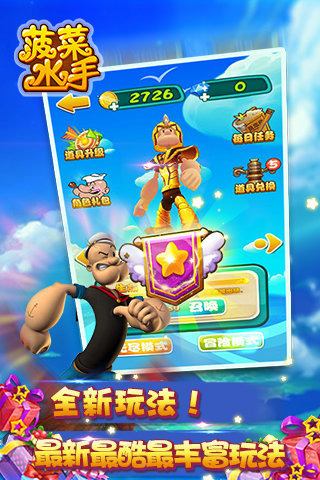 4.游戏还有可爱萌宠,或者为已有的大力水手和萌宠升级,提升其能力。