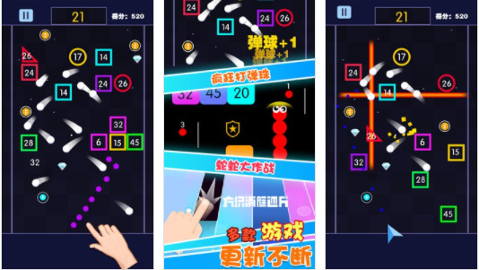 在游戏中,玩家要用弹珠以合理的角度消除掉落的数字方块,非常适合消磨时间。