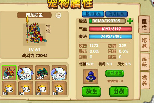 5、神兽宠物的丰富训练玩法,使战斗不再孤单。