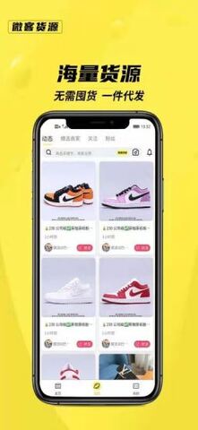 微客(微客货源现已更名为货源)软件内含有大量风格的服装和鞋子,包括各大品牌,微商朋友们可在线进行选购。