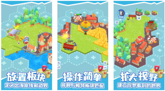 2.您的六角形版块可与相邻版块相匹配,扩大视野,同时也可建立一个想要看到的世界。