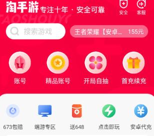 淘手游是一款超正规的游戏交易平台app,在这里进行游戏账号交易,交易非常安全有保障,而且这里的每一笔交易都有法律效力,每天都有数百万笔交易,每一笔交易都是真实有效的账号,买卖玩家可以直接在平台上进行私聊对接,真实安全无毒,玩家可以直接下载使用!