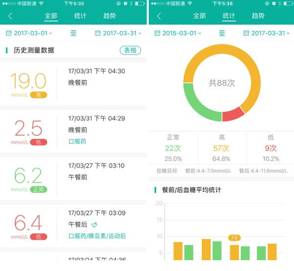 软件能够帮助医护有效管理患者,随时查看患者血糖趋势统计和达标情况,十分方便。