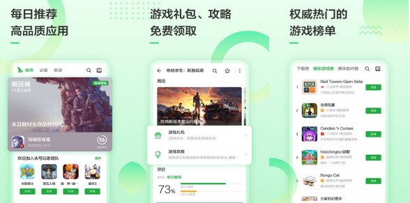 豌豆荚包含了超过45万款高质量的安卓应用程序和游戏,以及130多家内容提供商提供的音乐、视频、电子书、壁纸和主题。让你的手机比你想象的更强大、更有趣。
