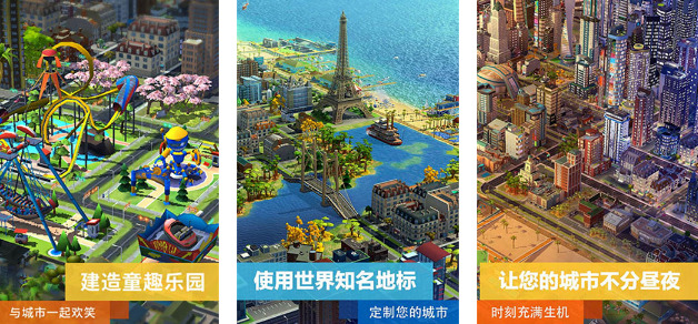 3、让城市充满色彩:资源是城市的重要产物。收集不同的道具资源,包括公园、海滩、高山、地标、巴黎镇、伦敦镇、东京镇等。通过工厂、商业建筑、港口和机场,建造和解锁各种建筑,从而给市民带来更多的快乐,让城市充满活力。