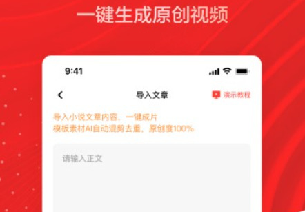 3.导入自选文章内容,云引擎加速,一分钟自动混剪,即刻生成视频。