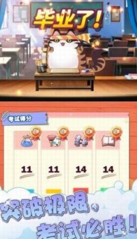 1.对现实学校抽象简化,模拟学习毕业流程,并结合猫咪互动养育,创造出的新玩法。