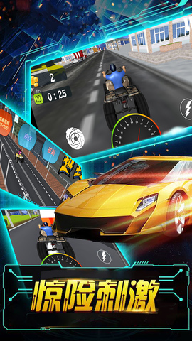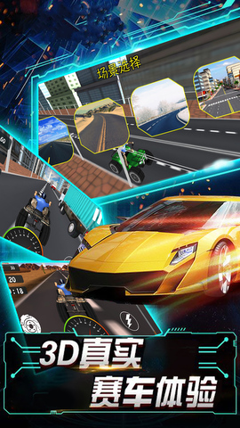 游戏拥有紧张刺激的倒计时器,以及实时速度指示供玩家参考,场景炫酷逼真,给玩家极致的飙车体验!
