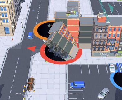1.玩家可以通过吞咽场景中的建筑物和道具来扩展自己,根据自己的大小选择自己想要吞咽的东西。