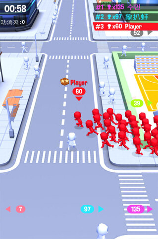 2.非常简单的游戏,不断地收集散落的人群,扩大你的组织,吞噬其他玩家的人群来获得力量。