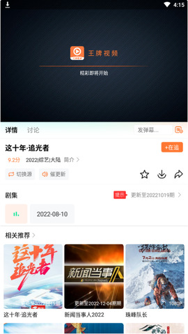 王牌视频安卓版是一款拥有全网资源的优质vip视频的免费追剧软件。软件中提供了丰富的资源,下载安装后,用户可以自由免费地寻找并播放各种自己想看的会员剧集。王牌视频安卓版软件的资源还会同步全网更新,用户可以享受到齐全的追剧体验,并且还提供了投屏功能,让用户的影视体验更加智能化和丰富多彩。喜欢追剧的用户,快来下载吧!