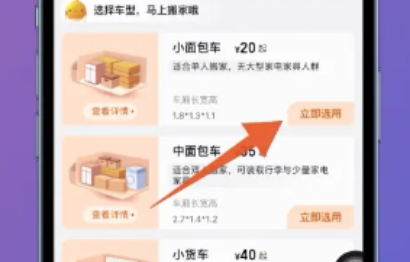 1.打开货拉拉主页,选择用车用途点击打开,进入搬家页面,选择您需要的车型。