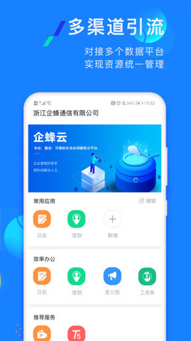 企蜂云是一款正规的效率办公服务软件。软件能提供一键获客服务,帮助用户获取客户兴趣并进行分类管理,实现智能化的运营管理,高效的人才招聘和管理,以及有效的团队效率管理。用户能够在企蜂云上轻松办公,享受便捷服务,实现线上一键互动了解,及时掌握详细的数据信息,拥有更高的、更好的办公效率。有需要的用户,就来下载体验吧!