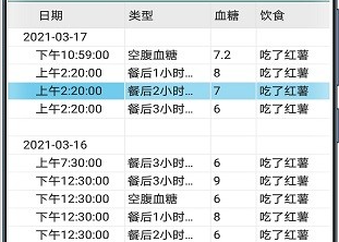 2.空腹血糖,饭后1小时血糖,饭后2小时血糖,饭后3小时血糖,还能记录饮食和锻炼。