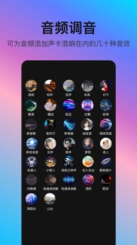 1.音频调音:可以为音频增加几十种音效,包括声卡混响。