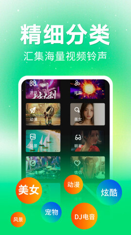 来电视频铃声是一款安全的来电视频铃声app。软件内提供海量的来电秀资源,让用户可以免费选择自己喜欢的来电秀,让手机来电更具个性。软件拥有各种好玩的来电秀主题和优美的铃声,让用户能够免费设置使用。在来电视频铃声软件中,热门视频资源不时更新,用户可以无限下载使用,让你的手机变得与众不同。喜欢的用户,就来点击下载吧!