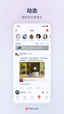 4.热闹动态:热闹而丰富的音乐社区,与志同道合的朋友相见恨晚。