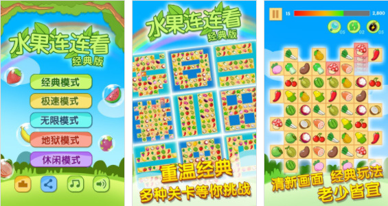 开心水果连连看2是一款经典的单机连连看消除游戏。游戏提供多种模式,包括经典、极速、无限、地狱、休闲等,各具特色且层次分明,适合不同层次的玩家。开心水果连连看2游戏中,玩家只需要点击两个或以上颜色相同的水果即可消除,消除的水果越多得分也就越高。随着关卡的逐渐解锁,游戏难度也越来越大,快来下载游戏挑战吧!