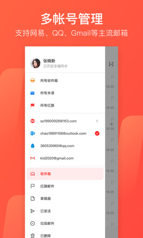 1.简单的手势操作,以更舒适的方式控制邮箱。