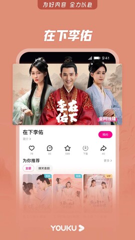 优酷正版app是一款以视频娱乐为主打的手机视频软件。软件提供了各种各样的电影、电视剧、综艺、动漫和纪录片等内容,下载后,用户可以通过软件浏览并观看自己喜欢的视频内容。优酷正版app支持在线观看和离线下载,让用户在不同的网络环境下都能够得到流畅的视频体验,在手机上就可以随时随地尽情享受各种节目。喜欢的用户,来下载吧!