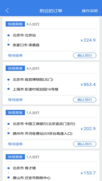 4、拼车出行分摊邮费,在这里可以发布拼车订单,找到一起拼车的小伙伴;