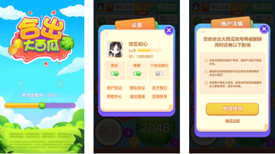1、非常经典的2048游戏画面,指尖滑动控制相同的西瓜合体,进化出更大的西瓜。