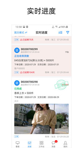 1、在线协作:全终端平台,随时随地在线跟单,实时跟踪订单进度,一目了然。
