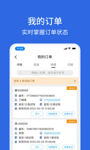 1.支持货主实时新增、修改、查看订单等功能,方便货主进行订单管理。