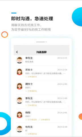 2.软件拥有在线聊天功能,方便求职者和招聘者之间进行沟通。