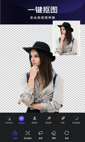 1.智能抠出图片人物,抠图效果惊人,一键换背景,视频抠像,人景分离。