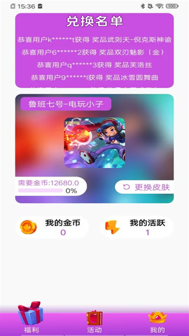 2、【皮肤兑换】每个人都可以领取,快速兑换皮肤。