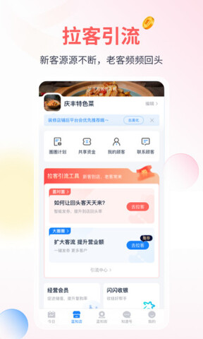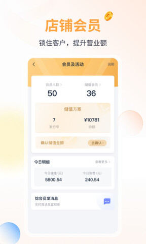 1、自主设计营销活动,商家可以在线创建营销活动,发送给周围2公里的顾客。