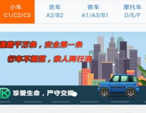 3.设置车型来备考A、B、C类驾照,学习科目一、科目四理论考试,及科目二、科目三路考考试。